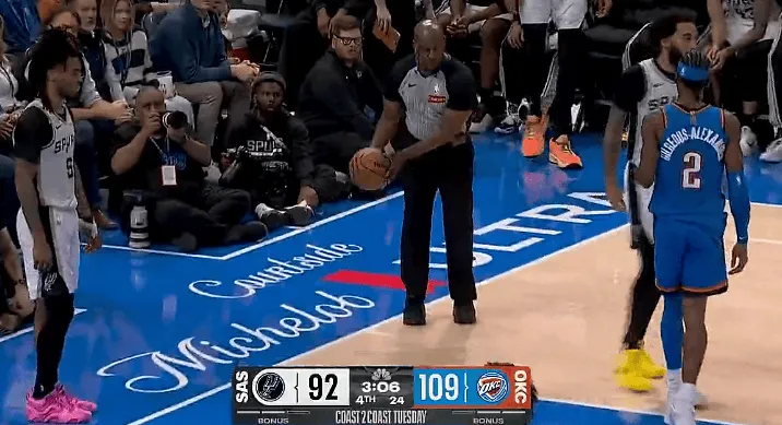 第四节比赛中,亚历山大和卡斯尔篮下卡位互相推搡,随后两人都被吹罚技犯。